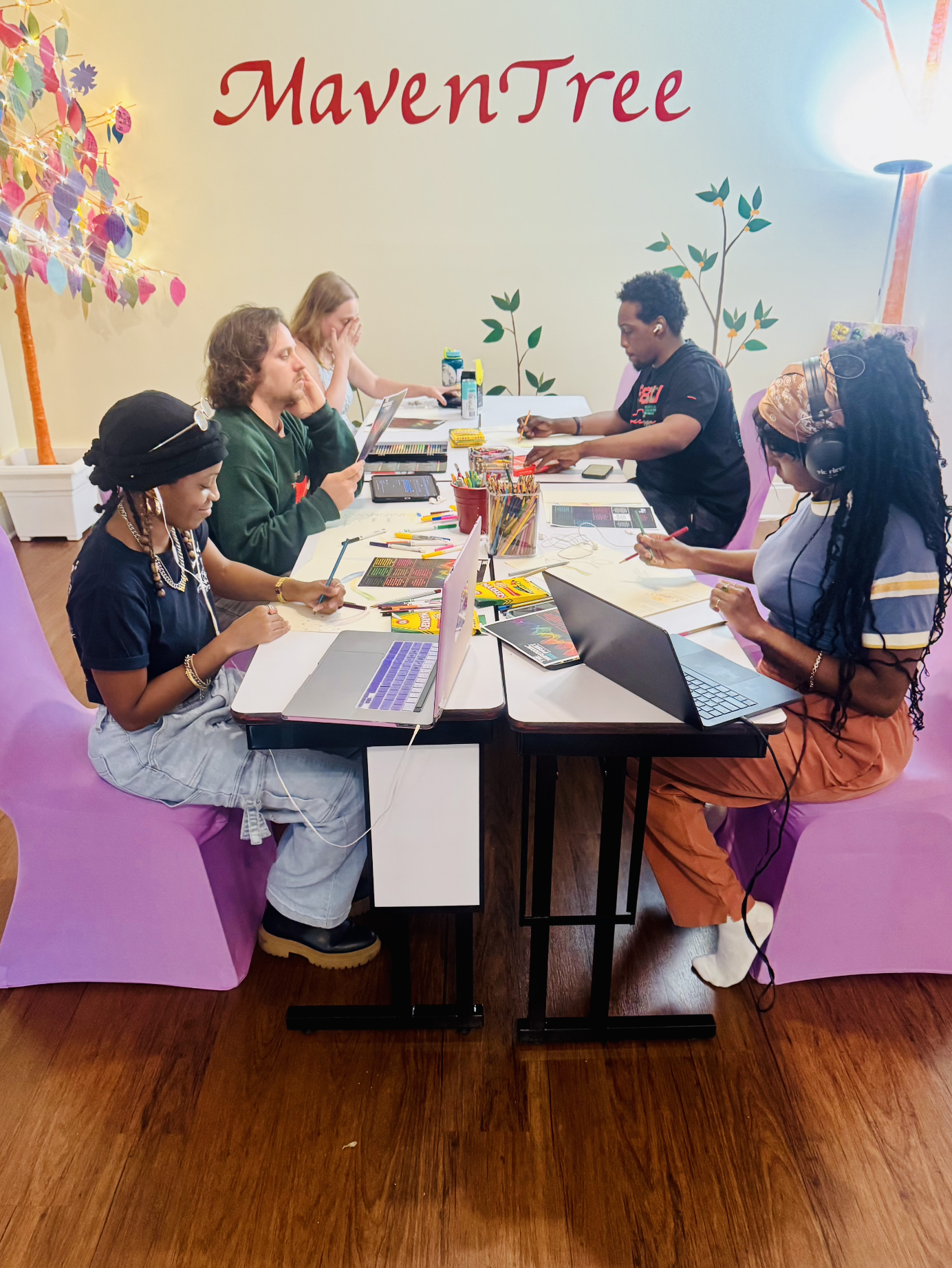 Our virtual course is co-created and community-led, offering an 8-week flexible curriculum that adapts to each artist’s unique journey. Designed to foster collaboration and personal growth, the program empowers artists to shape their learning experience in ways that ensure both accountability and ease.